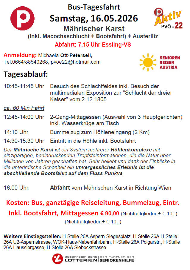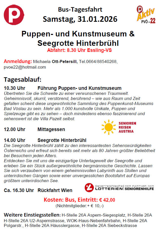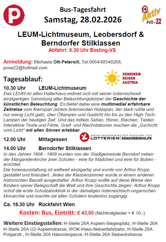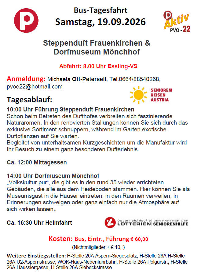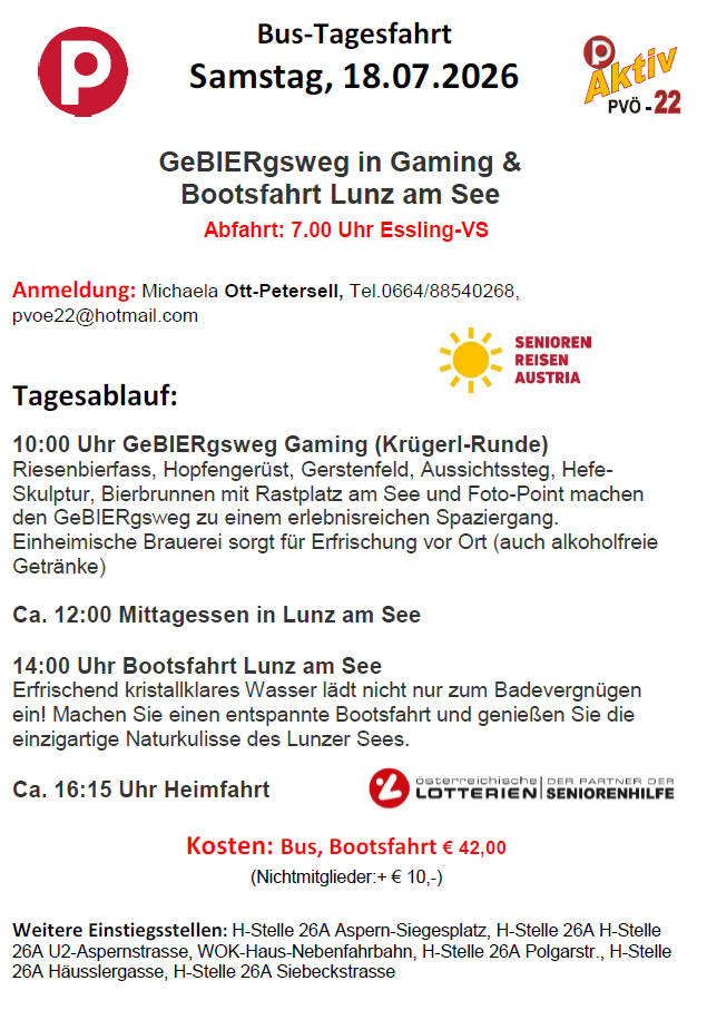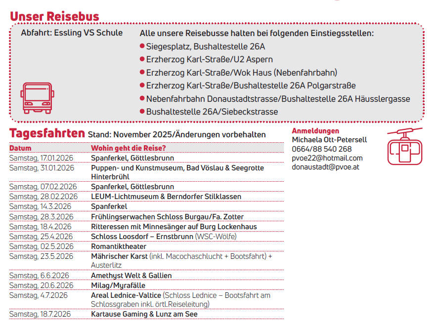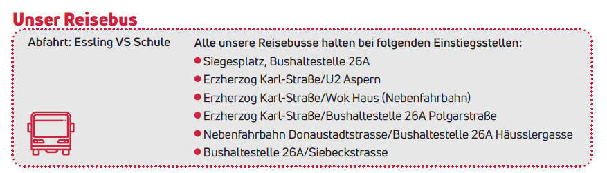 Alle Tages- und Mehrtagesfahrten werden in Kooperation mit einem konzessionierten Reiseunternehmen durchgeführt.