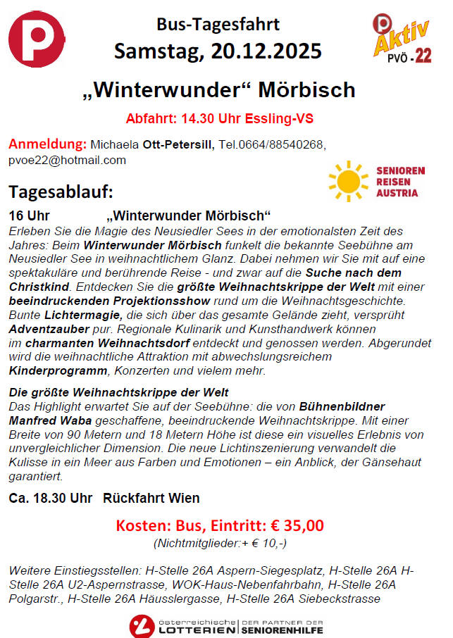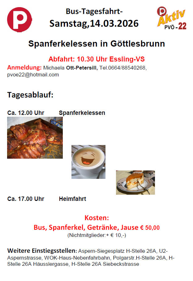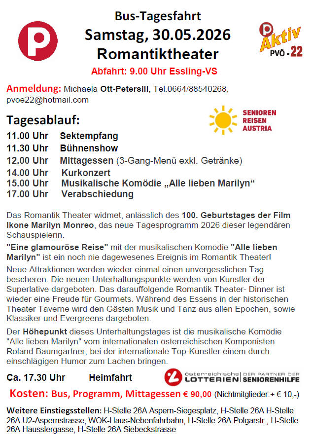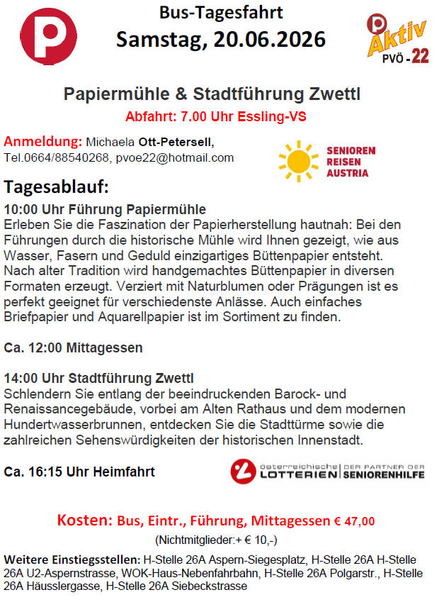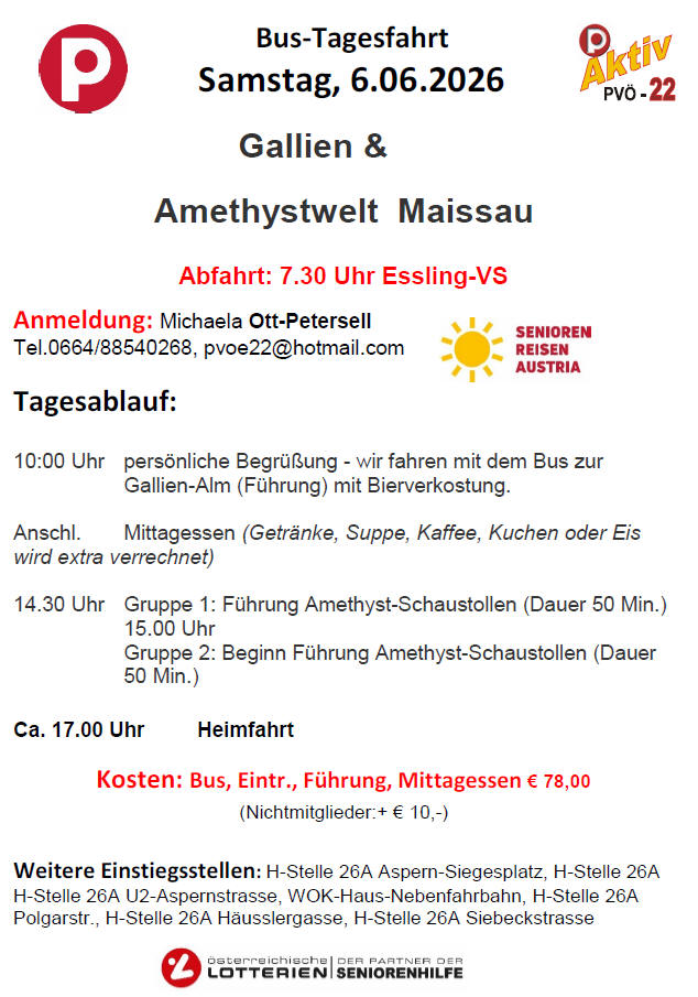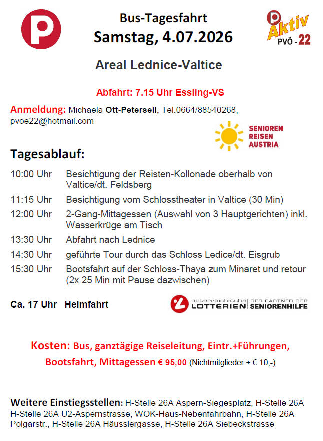 Alle Tages- und Mehrtagesfahrten werden in Kooperation mit einem konzessionierten Reiseunternehmen durchgeführt.